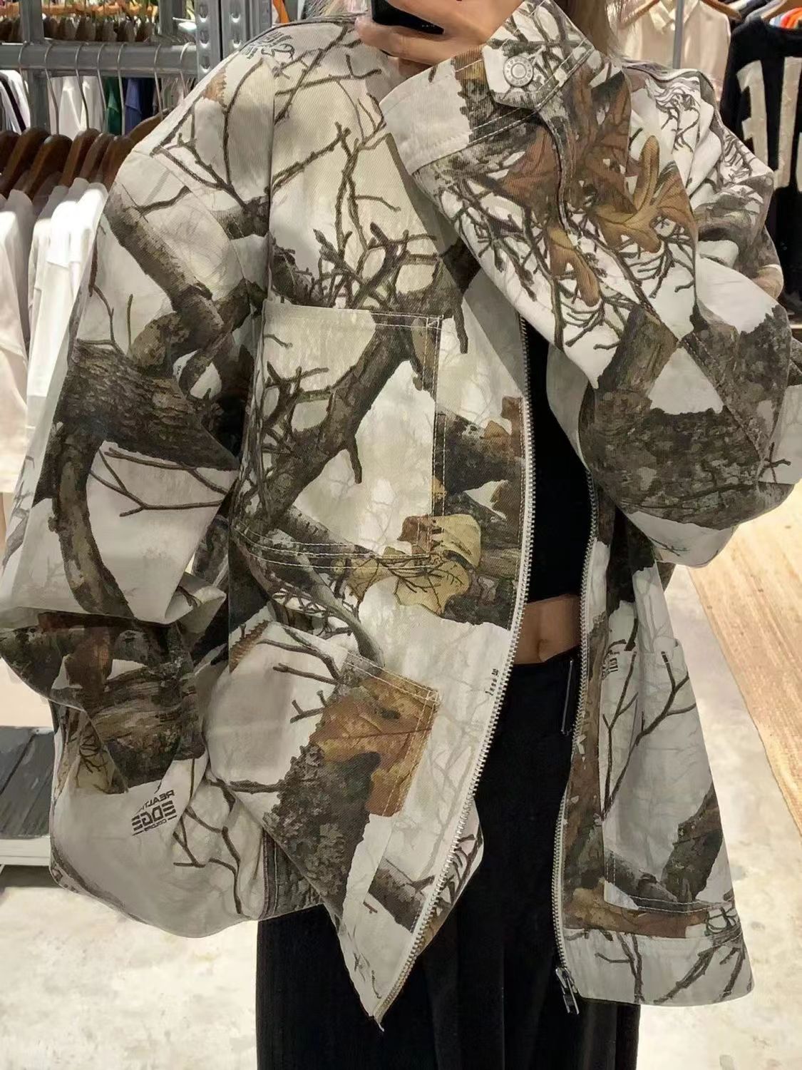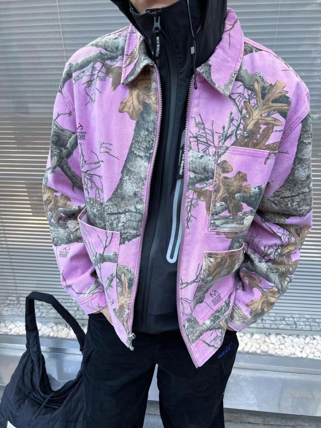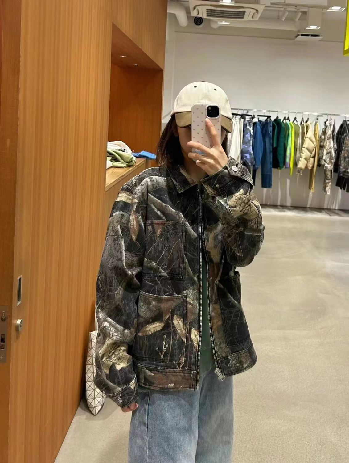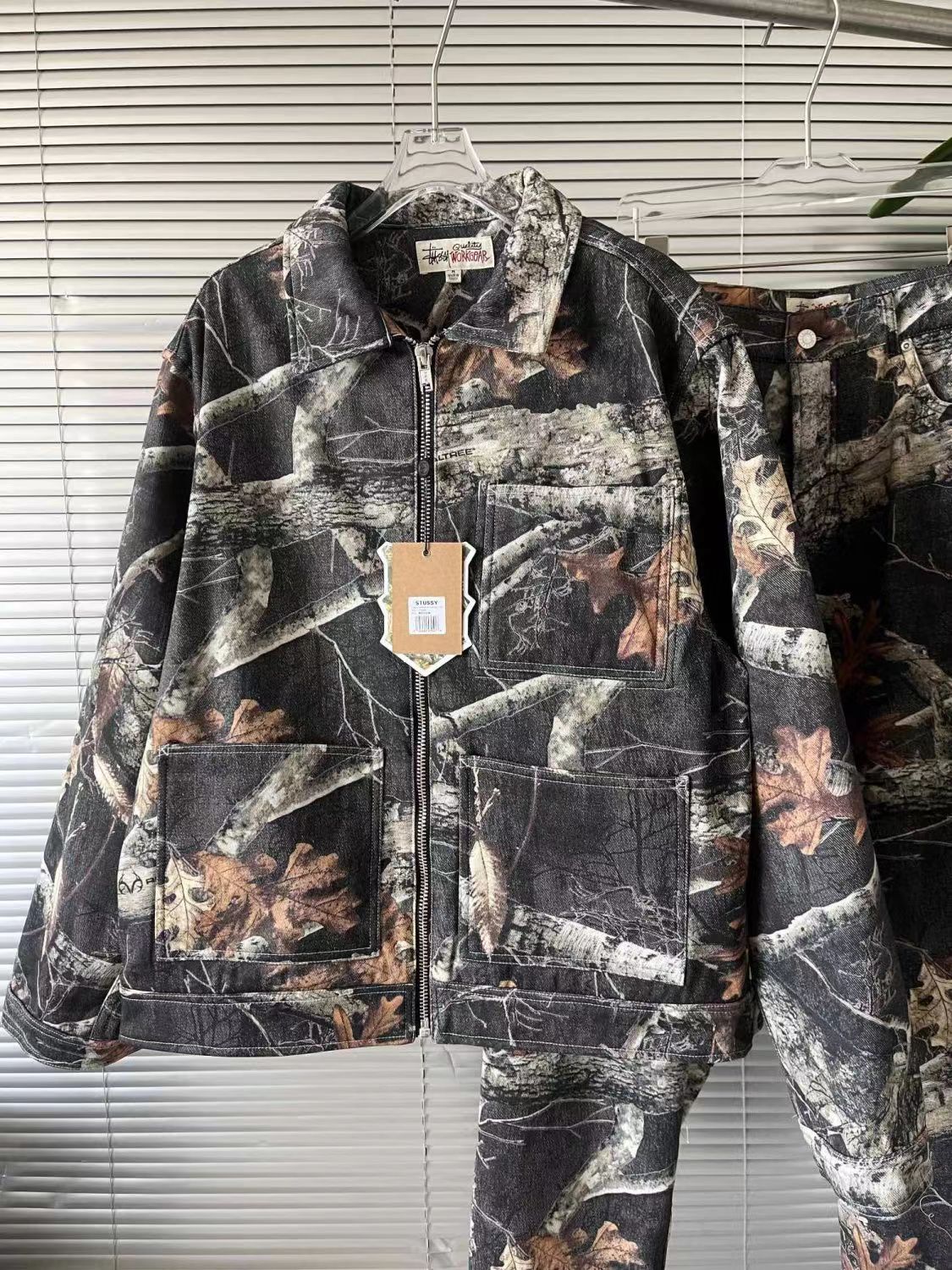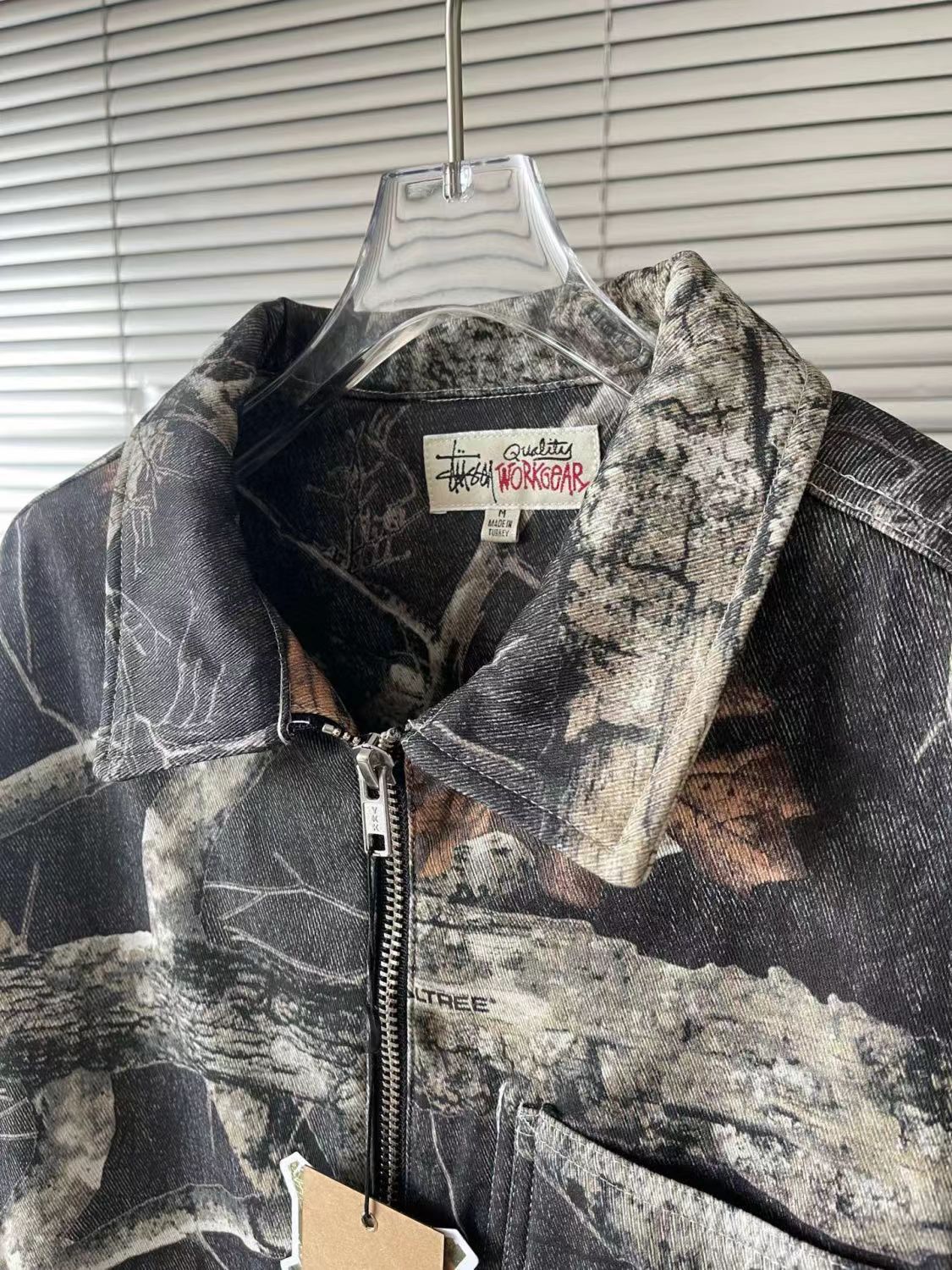 Stuthtssy カモフラージュ メープル リーフ フォール リーフ ワーク ジャケット