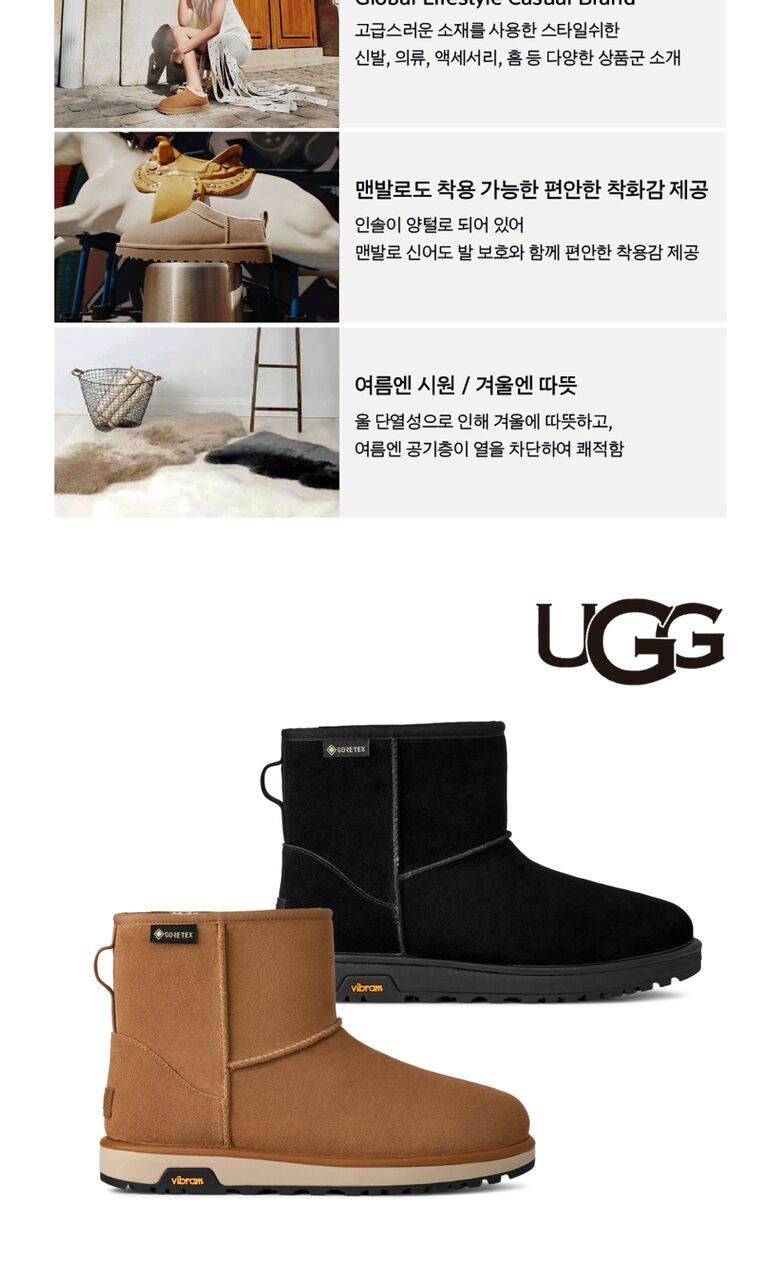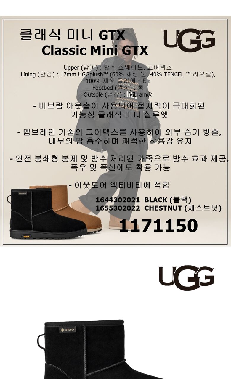 날씨 때문에 계획을 망치지 마세요. 클래식 미니 GTX를 신고 비오든 눈오든 어디든 떠나보세요. 클래식 부츠의 이 버전은 방수 스웨이드 소재와 내부 GORE-TEX 멤브레인을 사용하여 비와 눈을 막아줍니다. UGG 플러시 안감과 깔창의 포근한 보온성을 더해 영하 20도의 추위에도 따뜻하게 지낼 수 있습니다. 발바닥에는 가벼운 사탕수수 EVA 미드솔과 뛰어난 접지력의 Vibram 아웃솔이 발을 지지해 줍니다.